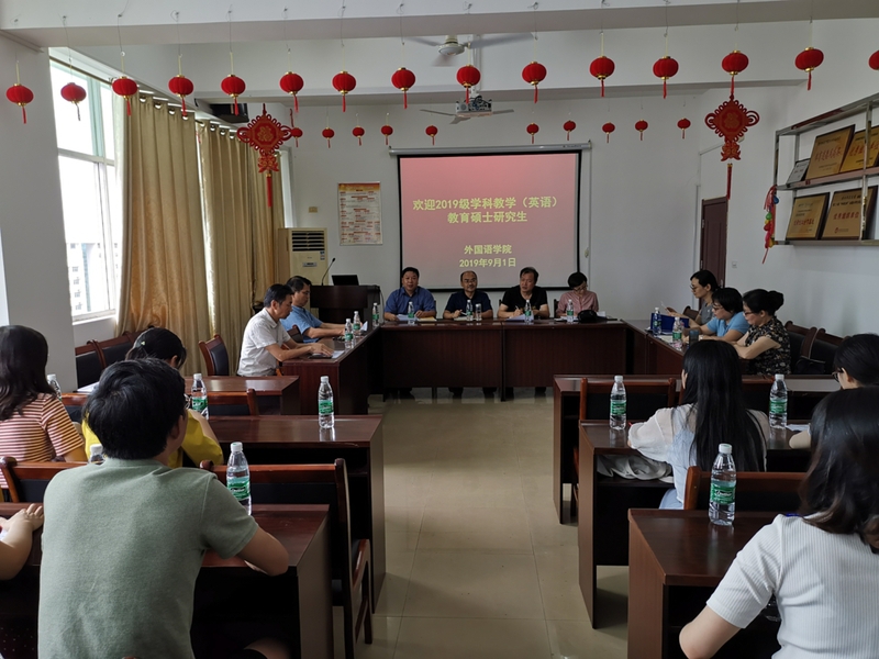 9月1日下午,外国语学院召开2019级教育硕士研究生师生见面会。外国语学院党委书记余健明教授、院长岑海兵教授、院党委副书记夏小环同志、校内硕士研究生导师、2019级教育硕士研究生新生出席了本次会议。会议由副院长郑友阶教授主持。