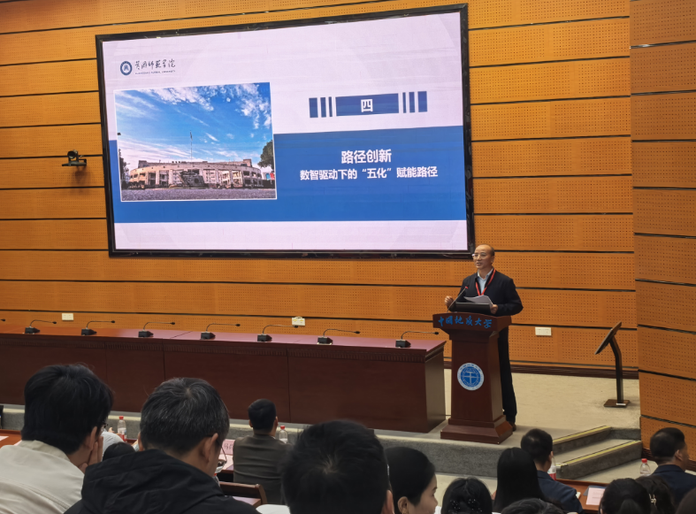10月18日,第四届全国高校人工智能助力人才自主培养研讨会在中国地质大学(武汉)成功召开。此次研讨会由湖北省高等教育学会指导,中国地质大学(武汉)与华中农业大学联合主办。我校党委常委、副校长夏庆利教授以“数智赋能、全科融通——黄冈师范学院‘AI+全科型教师’自主培养模式探索”为题作了主旨报告。他指出,人工智能技术的突破性发展为全科教学奠定了坚实基础,其革命性价值在于打破知识传递的时空限制与学科壁垒,实现了优质资源的广泛流动。在此基础上,我校坚持价值引领、精神铸魂,正全面建设服务于当代社会的全科型师范教育体系,为老区师范教育注入新的活力。