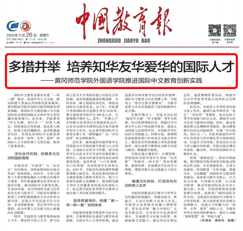 多措并举 培养知华友华爱华的国际人才——黄冈师范学院外国语学院推进国际中文教育创新实践