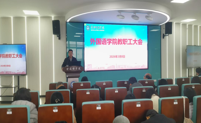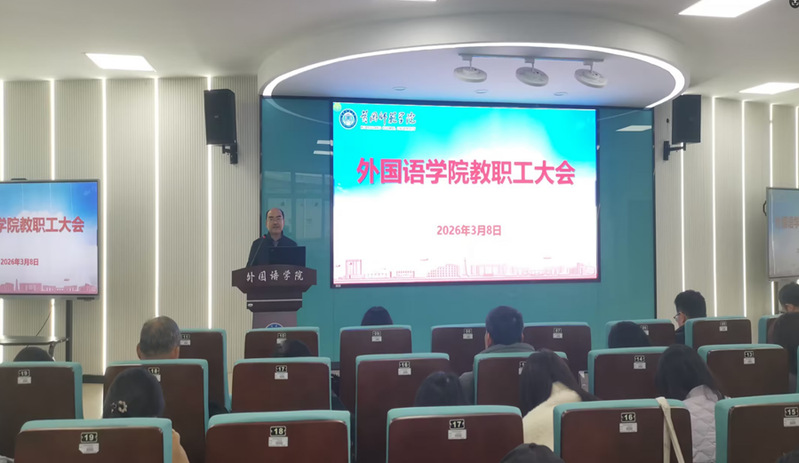 3月8日,外国语学院在圆楼202会议室召开新学期教职工大会。会议由院党委书记黄佑和主持,全院教职工参加会议。